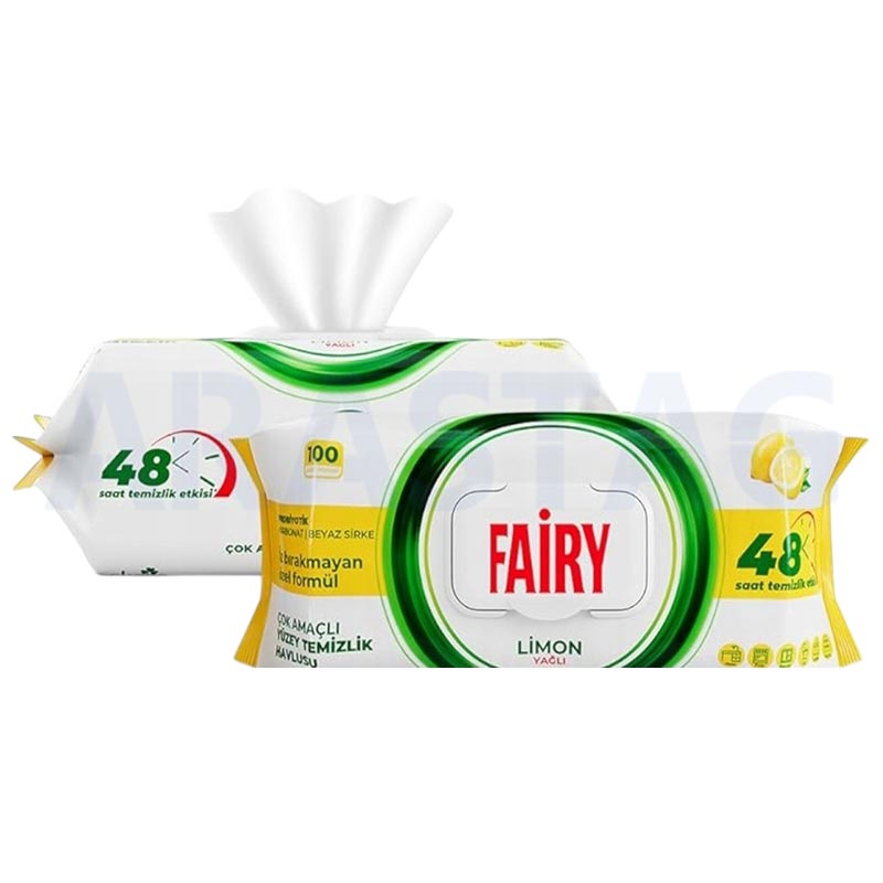 دستمال همه کاره سطوح FAIRY فیری رایحه لیمویی 100برگ 48 ساعته یک محصول ایده آل و کاربردی برای تمیز کردن انواع سطوح هست، این دستمال قدرت پاک کنندگی بالایی دارد و برای انواع سطوح مانند آشپزخانه، حمام و شیشه مناسب می باشد.