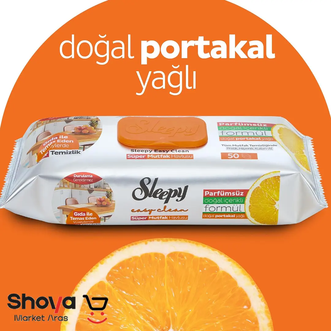 دستمال مرطوب آشپزخانه Sleepy حاوی روغن پرتغال بسته 50 عددی