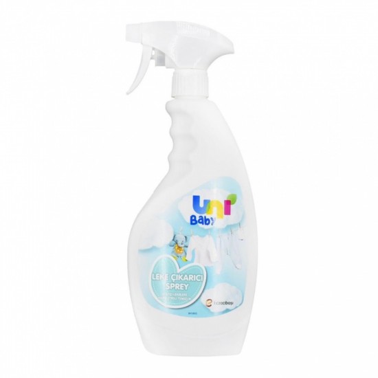 اسپری لکه بر لباس کودک یونی بی بی Uni Baby حجم 500 میلی لیتر با فرمولاسیون ویژه خود انواع لکه ها و آلودگی ها را از از روی لباس تمیز می کند، یکی از نکات مهم این اسپری خاصیت ضد حساسیت این اسپری هست که بدون ایجاد حساسیت در کودکان لباس ها را تمیز و عاری از لکه می گرداند همچنین، این اسپری به گونه ای طراحی شده است به بافت و رنگ لباس آسیب و صدمه ای وارد نمی کند.